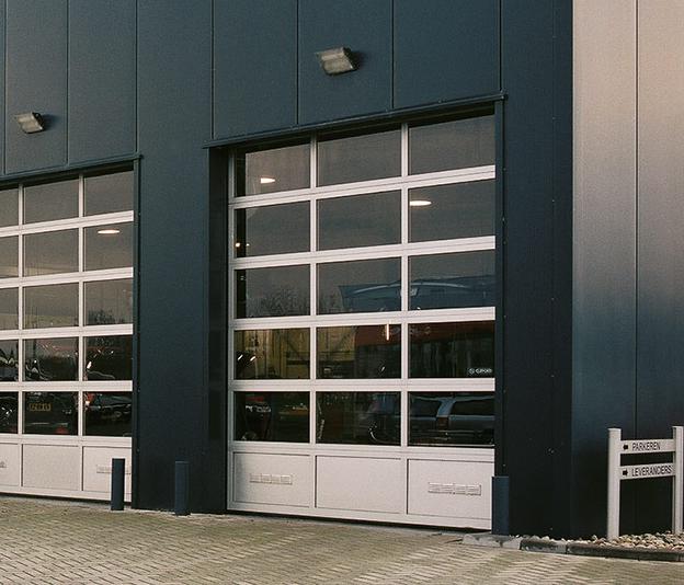 Seccionales: Formadas por paneles que se deslizan verticalmente y quedan bajo el techo, optimizando el espacio.